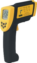 紅外測溫儀測量物體表面溫度,其光學(xué)系統(tǒng)匯聚被測物體的紅外輻射能量,匯聚到的能量聚焦在光電探測器上并轉(zhuǎn)變?yōu)橄鄳?yīng)的電信號,該信號經(jīng)電路轉(zhuǎn)換變?yōu)樽x數(shù)顯示LCD屏幕上,本機配備的激光燈能有效的對準被測物體及提高測量精度。
