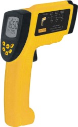 紅外測溫儀測量物體表面溫度,其光學系統(tǒng)匯聚被測物體的紅外輻射能量,匯聚到的能量聚焦在光電探測器上并轉(zhuǎn)變?yōu)橄鄳碾娦盘?,該信號?jīng)電路轉(zhuǎn)換變?yōu)樽x數(shù)顯示LCD屏幕上,本機配備的激光燈能有效的對準被測物體及提高測量精度。