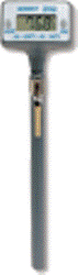 用數(shù)字溫度計(jì)測(cè)量的時(shí)候,拿掉保護(hù)套,按“on/off”鍵打開(kāi)電源,然后把探針的1/2以上長(zhǎng)度插入被測(cè)區(qū)域。按“D-H”鍵鎖定顯示數(shù)據(jù),當(dāng)“D-H”功能有效的時(shí)候,數(shù)字會(huì)閃爍,再次按下“D-H”鍵則回到正常測(cè)量模式。