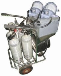 SP-98 車式長管呼吸裝置 SP-98車式長管呼吸裝置,是一種采用車載貯氣瓶、長膠管輸送氣體供操作者呼吸用的正壓式呼吸裝置。企業(yè)標準Q/HDKLA012-2003,參照歐洲標準EN132制定。 SP-98安全可靠、使用、維護簡便,可供給兩名操作者同時使用。由于采用車載式,SP-98能夠很方便地移動至離操作現(xiàn)場最適宜的位置,4個氣瓶可以同時或者單獨使用,并在使用過程中更換其中任意一只氣瓶。它特別適用于狹窄的工作場合,如罐體內(nèi)部、船艙、地下管道、密閉空間等,在石化、冶金、消防、航天、核工廠、化工廠等需長時間在毒氣環(huán)境及貧氧環(huán)境中工作的場合被廣泛使用。注意:在使用中必須有一人監(jiān)視呼吸裝置的使用情況,及時換接氣瓶。 主要特點