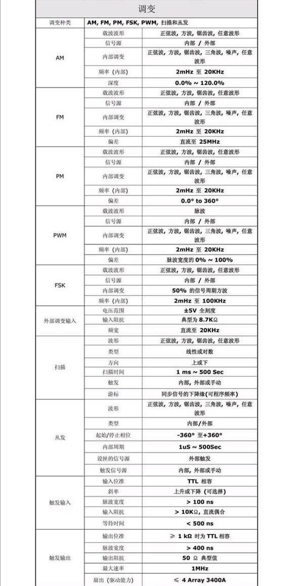 - 關(guān)鍵參數(shù):Array3400A 任意波形產(chǎn)生器 不僅可輸出高達(dá)50MHz的正弦波,上升/下降時(shí)間小于10ns 、頻率達(dá)25MHz的完美方波,以及最高200KHz的線性鋸齒波,還可以產(chǎn)生10MHz的可變時(shí)延脈沖以及任意波形,滿足各類使用者的需求.