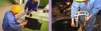 軋輥軸承箱與軋機(jī)牌坊配合通過安裝在軋輥軸承箱體外面的襯板來調(diào)整配合間隙,軋機(jī)工作過程中其磨損程度是不均勻的,通常邊部磨損嚴(yán)重而中間磨損很少。用一般千分尺測(cè)量檢查時(shí),由于尺架中部大圓弧的干涉,只能測(cè)量軸承箱的邊部尺寸而,而中部尺寸測(cè)量不到,致使檢測(cè)結(jié)果失真。使用仿型外測(cè)量千分尺,由于它們形狀和尺寸根據(jù)軋輥軸承箱制作,就可以較好的解決這個(gè)問題。 |