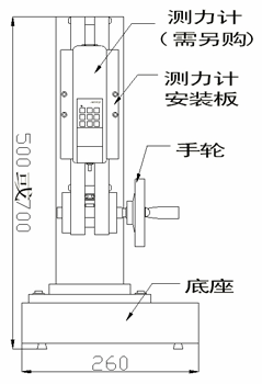 工作臺上合適的位置。旋轉測試架側面的手輪,測力計就能上下平穩(wěn)移動,完成測試工作。