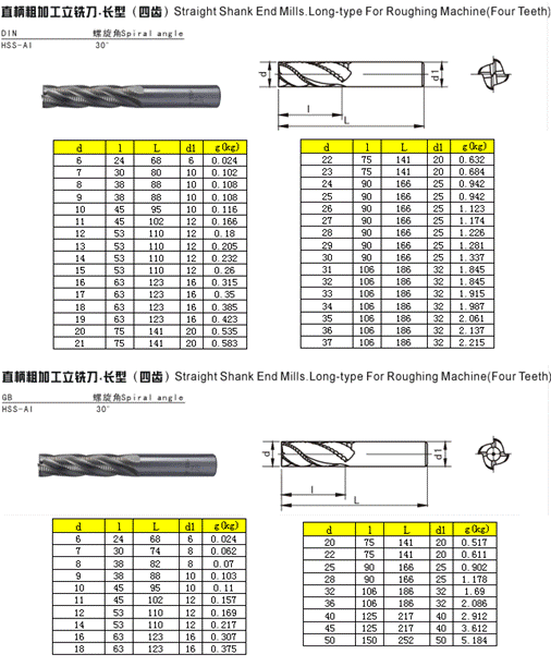 - 儀器名稱:直柄粗加工立銑刀·長型(四齒)