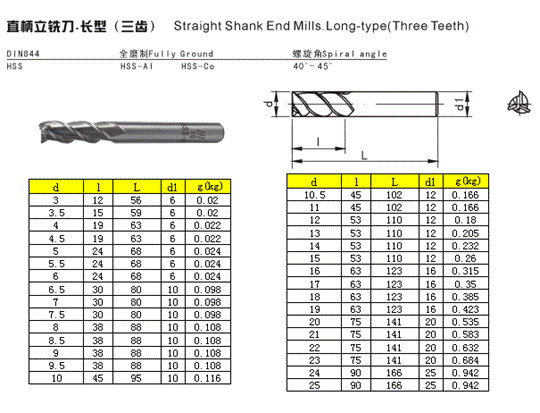 - 儀器名稱(chēng):直柄立銑刀·長(zhǎng)型(三齒)
