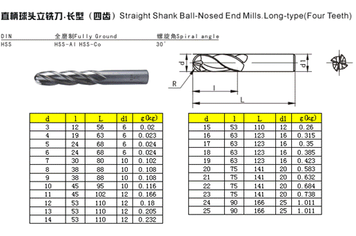 - 儀器名稱:直柄球頭立銑刀·長(zhǎng)型(四齒)
