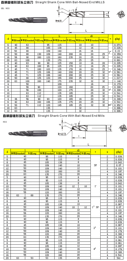 - 儀器名稱:直柄圓錐形球頭立銑刀