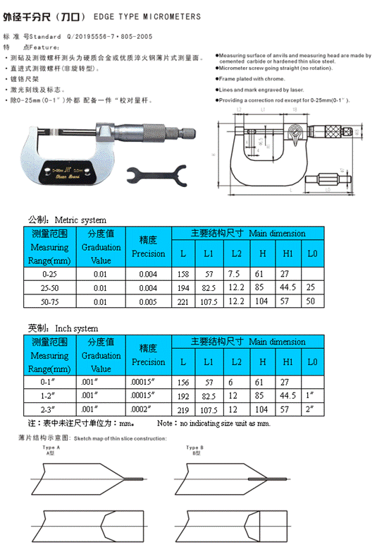 - 儀器名稱(chēng):外徑千分尺(刀口)
