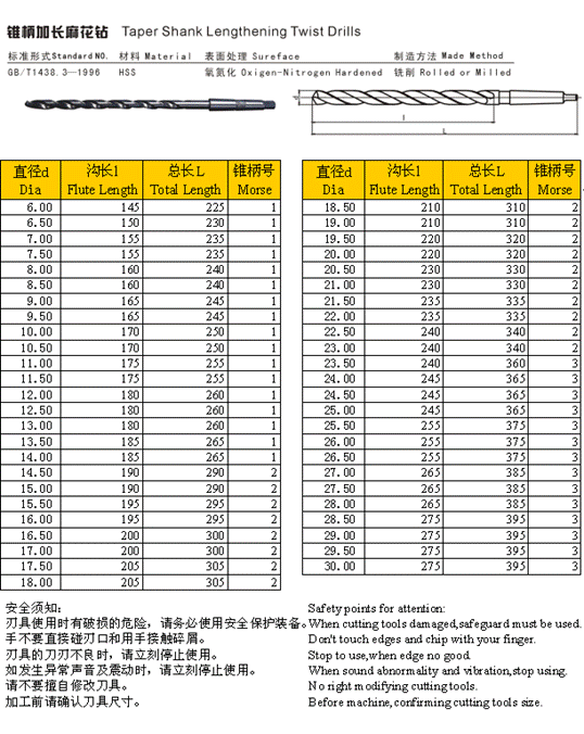 - 儀器名稱:錐柄加長麻花鉆