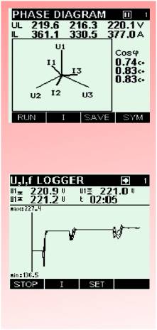 通過預(yù)設(shè)的記錄屏幕,可對(duì)所有主要電力質(zhì)量參數(shù)進(jìn)行現(xiàn)場(chǎng)評(píng)估(U、I、P、功率因數(shù)、cosφ、總諧波失真、單獨(dú)諧波分量測(cè)量、相移等)。