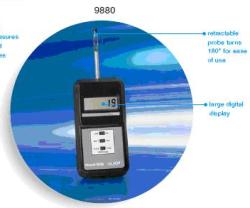 這些袖珍型儀表在使用時(shí)只需要很少的培訓(xùn)。它們是進(jìn)行通風(fēng)櫥、噴霧間和通風(fēng)系統(tǒng)的面速度測(cè)量以及進(jìn)行室內(nèi)空氣檢查的理想工具。 9880 具有一個(gè)