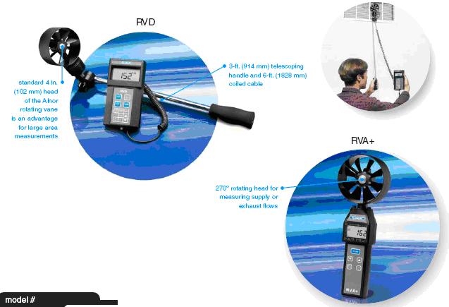 旋轉(zhuǎn)葉片風(fēng)速計(jì)可測(cè)量真實(shí)空氣速度,讀物無(wú)需進(jìn)行密度校正因子修正。 RVA+ 的用戶(hù)可通過(guò)按單側(cè)按鈕并對(duì)被測(cè)量區(qū)域進(jìn)行“掃描”而獲得面積平均流量。 RVD 提供了伸長(zhǎng)測(cè)量以及數(shù)據(jù)記錄、調(diào)用和下載功能。
