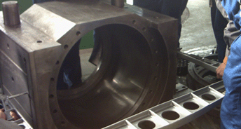 軋輥軸承箱與軋機(jī)牌坊配合通過(guò)安裝在軋輥軸承箱體外面的襯板來(lái)調(diào)整配合間隙,軋機(jī)工作過(guò)程中其磨損程度是不均勻的,通常邊部磨損嚴(yán)重而中間磨損很少。用一般千分尺測(cè)量檢查時(shí),由于尺架中部大圓弧的干涉,只能測(cè)量軸承箱的邊部尺寸而,而中部尺寸測(cè)量不到,致使檢測(cè)結(jié)果失真。使用仿型外測(cè)量千分尺,由于它們形狀和尺寸根據(jù)軋輥軸承箱制作,就可以較好的解決這個(gè)問題。 |