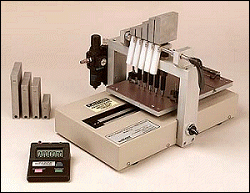 本儀器基于以下汽車標(biāo)準(zhǔn)設(shè)計(jì)(福特 BN 108-13; 通用 GMN3943; 戴姆勒克萊斯勒 LP-463DD-18-01), 通常有五個(gè)觸點(diǎn)。 儀器含有氣動(dòng)和可安裝樣品的傳動(dòng)裝置。傳動(dòng)裝置直線行走,有一個(gè)旋鈕控制。可用于一個(gè)或多個(gè)樣品通行檢測(cè) 。電子計(jì)時(shí)器顯示速度,可以通過(guò)改變空氣壓力來(lái)控制這個(gè)速度。 儀器支架支持五個(gè)獨(dú)立的花鍵桿,這樣可以為磨針加載連續(xù)垂直的力(磨針可互換,直徑1.0mm或7.0mm,為半圓型頭)。支架的手柄可控制它懸臂的高低,五個(gè)支撐架可使一個(gè)或更多懸臂移動(dòng)到不礙事的地方,從而觸碰不到測(cè)試中的樣本。 不同的重量塊狀在懸臂的上端,保證作用在樣品表面上的是標(biāo)準(zhǔn)大小的力。每套儀器含有的重量快有: 2N, 3N, 4N, 5N, 6N, 7N, 10N, 15N 和 20N 。另外還可購(gòu)得8N, 13N, 18N 和 25N的重量塊。. 盡管通常情況下22mm以內(nèi)厚度的扁平樣品都能測(cè),但前提是樣品邊緣不要太厚,樣品不要太軟或固定得足夠好。標(biāo)配里含有帶彈簧的樣品固定裝置,它可以固定在樣品臺(tái)的邊緣,以獲得更好的機(jī)動(dòng)性。針對(duì)更厚的樣品,可以選購(gòu)"可移動(dòng)的"緊固夾。 儀器的標(biāo)準(zhǔn)配置: | |||||||||