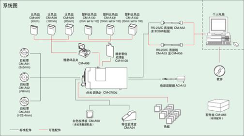 色彩數(shù)據(jù)軟件SpectraMagic NX、透射樣品架、玻璃比色槽(2mm、10mm、20mm)、塑料比色槽(2mm、10mm、20mm)、透射零位校正板、色板、RS-232C線纜(適用于IBM個人電腦) |