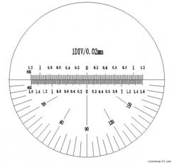 目鏡最下面是45倍,目鏡最上(拉上來(lái))面是60倍,分劃刻度尺分別是45倍和60倍對(duì)應(yīng)刻度測(cè)量。目鏡可360°旋轉(zhuǎn)對(duì)應(yīng)被看物,目鏡旋轉(zhuǎn)調(diào)整,可同時(shí)看清分劃尺和視野中的物體,可適應(yīng)不同視力用戶使用。目鏡順時(shí)針?lè)较蛐D(zhuǎn)可同時(shí)測(cè)量孔距、刻線寬度、刻線距離、鍵槽寬度、狹縫凹痕寬度、長(zhǎng)度、金屬和非金屬表面質(zhì)量、纖維、織物密度、野外標(biāo)本等,XK系列均可同時(shí)測(cè)量0~180°角度。
